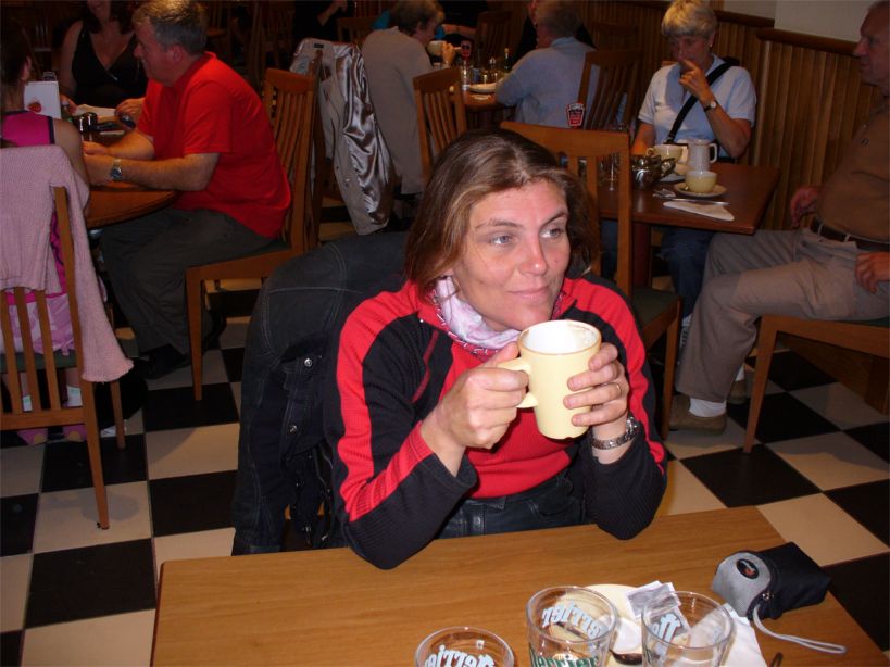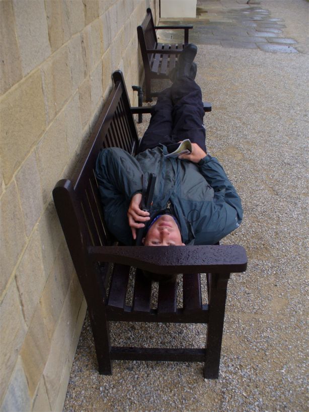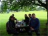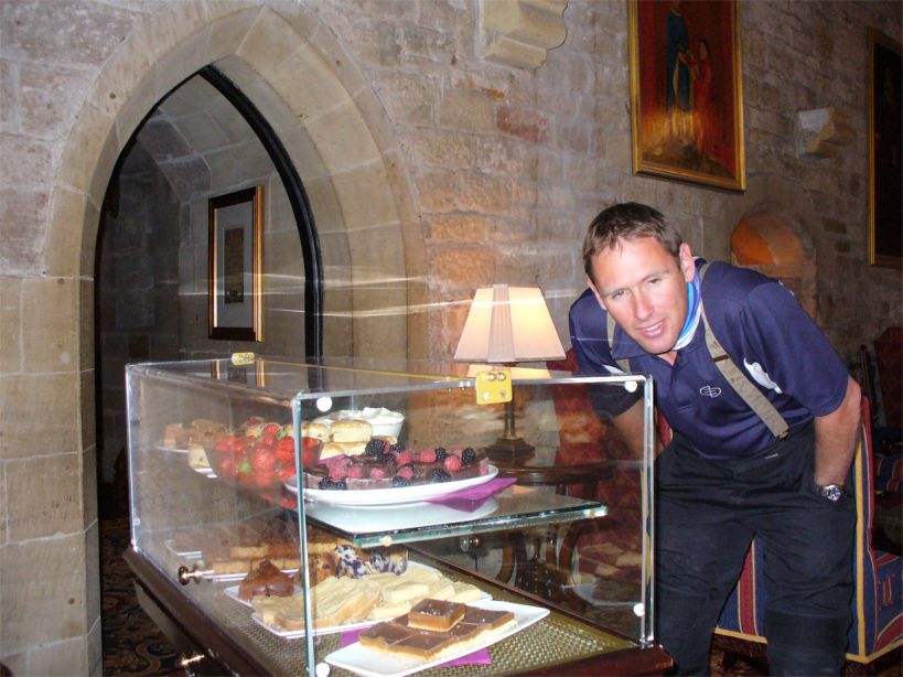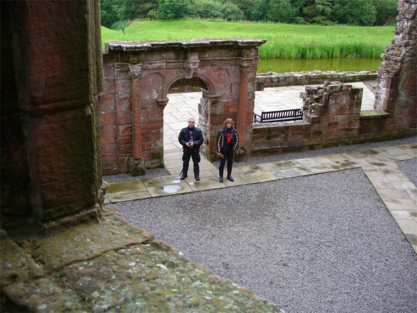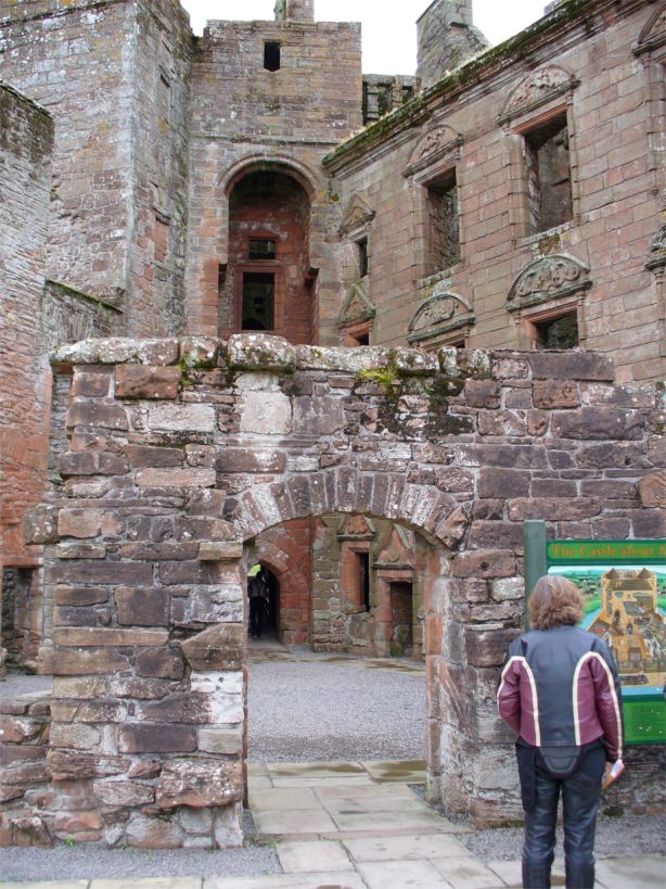 Och vid den berömda trekantiga borgen Caerfavorock satt det bra med en fika.