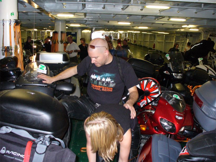 Och på DFDS färjan mellan Göteborg och Newcastle så var det trångt på mc däck