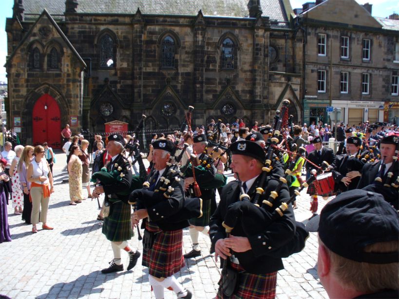 Också hamnade vi mitt i en jätteparad med över 20 olika säckpipe vaktparader,