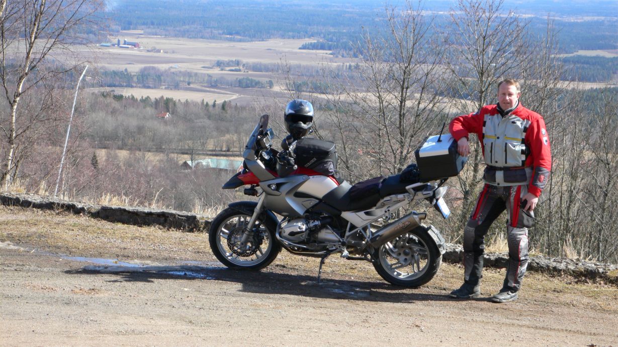 Och vilket väder det var... Bamse blickar ut på Vänern från Kinnekulle.