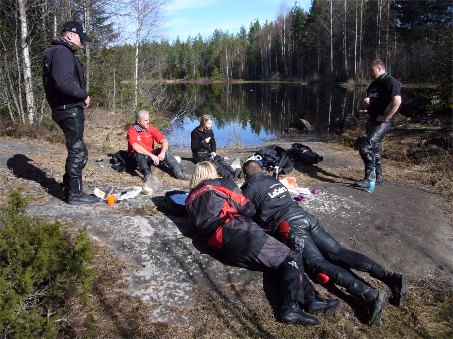 Till slut blev vi sex ekipage som drog över kölen. Och vilka underbara vägar dom har där. Så en fika paus utefter vei 21 i solen sitter ju inte fel.