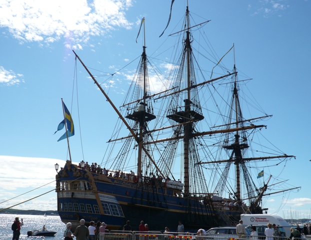 Så i början av augusti så hade jag och Malin lite semester kvar så vi drog ner till Mor på västkusten och slängde oss på rygg i solen några dagar. Sedan var vi mogna för att dra vidare söderut där vi hade planerat att hälsa på Malins bror i Lund och Vomb. Men först skulle vi kolla in Gotheborg, Ostindiefararen, som låg för ankar i Lysekil. En imponerande skuta.