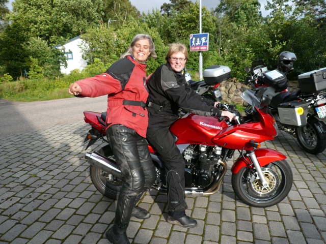 Sedan på vägen söderut så skulle vi stanna till hos Aste o Sara men då vi närmade oss Åstorp så visade det sig att dom var uppe i nordvästra Skåne för att kolla in en cykel åt Sara. Och se så glad man kan se ut när man provar en ny motorcykel.....