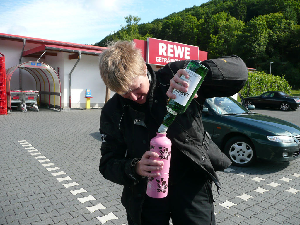 Dagen efter bar det söderut igen efter lite proviantering, jag gissar att alla rätt troende Whisky älskare nu får en klump av gråt i halsen när vi häller över en fin Laphroigh till en rosa aluminium flaska.... Men den smakade mumma ändå också riskerar man ju inte att flaskan skall gå sönder. Och på vägen söderut så blev det ett lunchstopp i Moseldalen som var mycket fin att åka igenom.