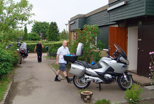 Sedan smög vi omkring och kollade in alla medresenärer som skulle med färjan. Det fanns alla typer av cyklar och människor, och jag antar att dom kollade in oss också med samma nyfikenhet som vi tittade på dom. Och till slut kom vi med färjan norr ut. Och direkt ilandkomna så drog vi iväg mot Köpenhamn och Öresundsbron. Tyvärr så var det riktigt risigt väder med spöregn större delen av turen så det gick inte supersnabbt men bättre att komma lite senare än inte alls. Och när vi svängde upp framför Aste o Saras dörr i Åstorp en kvart före midnatt så hade vi tillryggalagt 1034 km på 9 timmar 29 minuter och 53 sekunder med en snitthastighet på ca 108.8 km/h. Helt ok. Så vi tog bara en liten w och ramlade i säng. Jag antog att AoS kanske skulle sova "lite längre" dan därpå så jag förvarnade om att jag kanske skulle dra hemåt Värmland innan dom hade vaknat vilket utlöste protester. Så jag lovade att försöka att hålla mig kvar så länge jag orkade. Men efter att ha vaknat halv sex och smugit omkring ett par timmar så rullade jag iväg cykeln några hundar meter för att dom inte skulle vakna också drog jag iväg hemåt. Längtan efter Malin och Gassebol började göra sig påmind. Också hade jag ju dessutom bortåt 50 mil hem så jag tänkte att det var gôtt att komma iväg i tid. Sedan tänkte jag att Aste o Sara nog inte mår dåligt av att få vara ensamma efter att ha umgåtts med mig oavbrutet under 14 dagar och nästan aldrig fått varit ensamma.