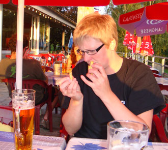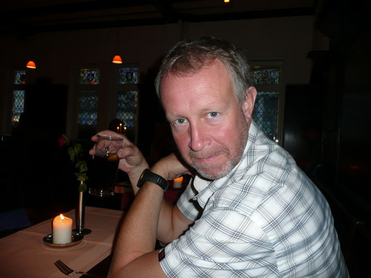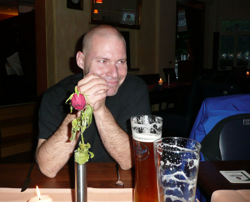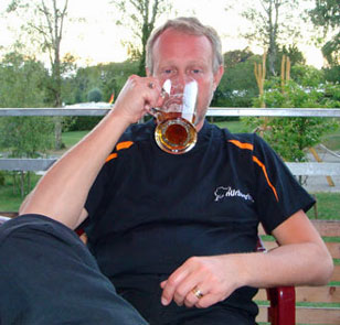 Och så här glad blev Aste efter bara en veteöl och jag minst lika glad för ett glas Cokacola eftersom det nu hade börjat gett med sig rejält i foten.