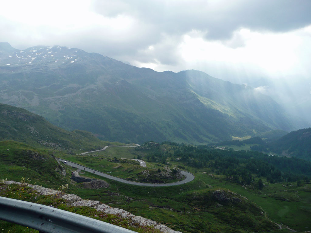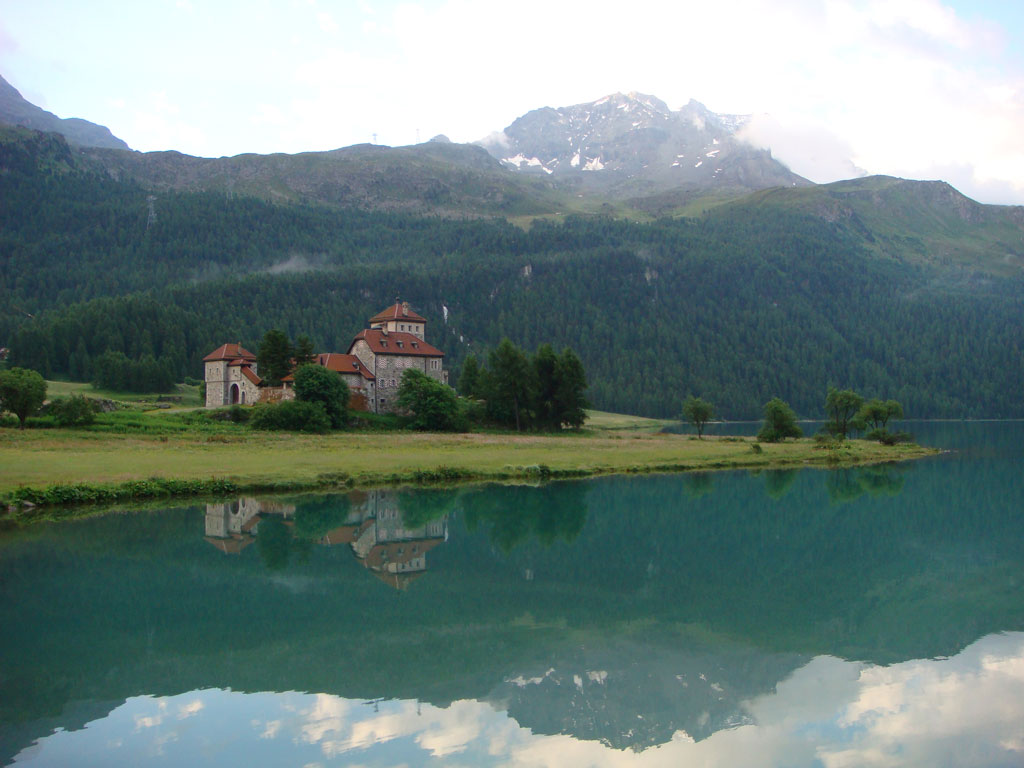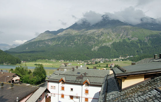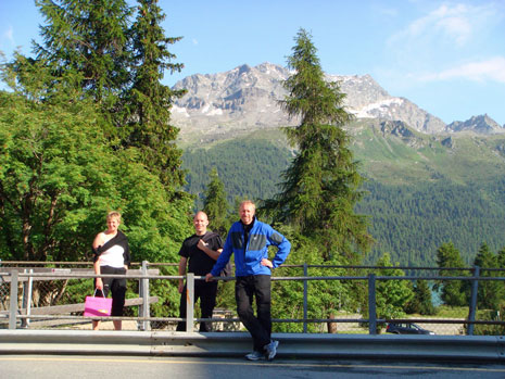 Så efter Boden sjön så kom vi in i Österrike, Schweiz, nuddade Liechtenstein och hittade Silvaplana i Schweiz, tror jag. Det var i alla fall otroligt vackert med fantastiska vyer vart än man vände sig. Vi kom dit i ett riktigt oväder med regn och åska men när vi hittat ett schysst hotell mitt i byn, checkat in och gjort oss klara för en liten by vandring, då sken solen igen och allt var frid och fröjd. Och lite längre bort i dalen kunde man se St Moritz. Vi fattade inte först varför sängarna stod direkt på golvet, inte för än vi provlegat och insett att när man slog upp dom ljusblå och tittade ut så såg man fjällen runt omkring.