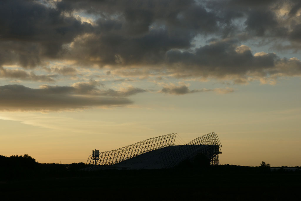 Och på min normala morgonpromenad innan dom andra vaknade så gick jag en runda runt byn och i utkanten av byn fanns en av Tysklands större "inomhus slalombackar" om vi nu tydde de Tyska skyltarna rätt. Vilket jag som konstruktör gjorde sig bra i soluppgången.