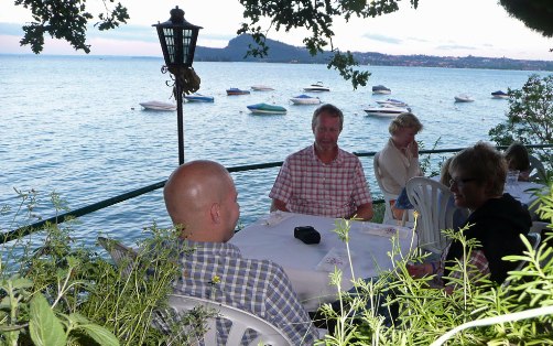 På kvällen avnjöt vi en helt fantastisk middag nere på campingens restaurang som hängde ut över sjön. Både pizzan och pastan smakade helt otroligt bra, enda felet var väl bara det som Sara hade beställt i vilket det ingick hela små bläckfiskar som kanske inte var det som såg allra aptitligast ut. Men annars gick allt ner och utsikten var det ju inget fel på. Så vi bokade in samma bord för nästkommande kväll.