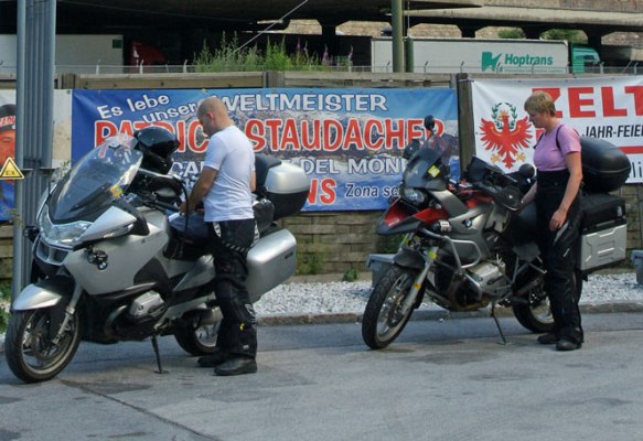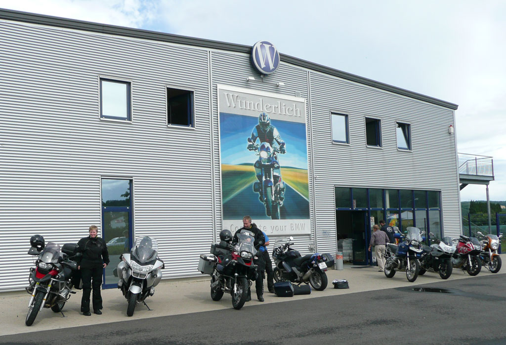 Som waypoints före resan hade Aste lagt in Touratech och Wunderlich som ju är stora tillbehörsbutiker/fabriker med mycket roliga prylar till speciellt BMW. Och av som en händelse så råkade vi hamna ganska nära Wunderlich så det var bara att svänga dit och shoppa loss lite. Annars var ju upplägget för resan sådan att "sikta på Alperna", på andra sidan tar vi antingen höger eller vänster. Om vi tar höger kan det bli vidare genom Rivieran, norra Spanien, Frankrike med Normandie och hemåt. Tar vi vänster efter Alperna så blir det lite mer berg och öst Europa hemåt. Alltså ingen större detalj planering gjord och som bidrog till att vi kände oss väldigt lediga, avslappnade och goa, m.a.o. på semester.