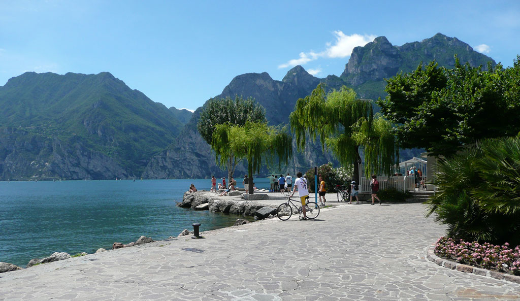 Dagen efter så skulle vi dra ett "varv" runt Garda sjön med en liten utstickare till Touratech's Italienska butik som låg i Trento, några mil norr om nordspetsen på Garda sjön. Det var kokhett att kryp köra eller stå still när det bildades köer genom alla små byar man skulle igenom men det var värt att ta vägen längst nere vid vattnet för det var ju fantastiskt fint och vackert vart man än kom. Enda felet var väl att vi hade lite svårt att hitta Touratech's butik. Men efter lite surfande så fick vi fram rätt adress och hittade affären. Tyvärr visade det sig då att dom bara hade postorderförsäljning och att det inte fanns någon möjlighet till direktförsäljning eller besök inne på lagret. Men vi hade ju fått oss en fin tur i alla fall.