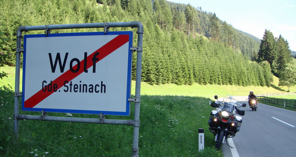 Här har min Wolf, R1200GSA, just försökt att para sig med Saras R1200GS vilket inte gick så bra. Aste skulle fota lite så han skickade iväg oss lite i förväg och när vi sedan hittade en liten plätt att stanna på så observerade jag inte riktigt att den lutade nedåt så mycket. Så när jag skulle plocka ut den stora kameran ur toppboxen så gled Wolf lite framåt varvid stödet ju fälldes in och cykeln rasade på Sara som satt på sin cykel. Så Sara blev liggandes med sin cykel lite på sig som i sin tur hade min cykel på sig. Och hade jag inte fått den adrenalinkicken som jag fick så hade jag nog aldrig lyckats lyfta upp min Wolf som säkert vägde drygt 300 kg med all packning, men upp kom den och det fort. Sedan hade Sara lyckats lirka loss sig så vi fick upp hennes också med förenade krafter. Sedan kom Aste fram och undrade "varför ser ni så konstiga ut..." Skadorna blev dock ganska små, iaf på Wolf där det bara blev ett litet märke på toppboxen. Saras cukel fick sidoväskan intryckt några centimeter med ett stort hack i och handskyddet av kolfiber sprack. Men allt funkade. Jag tänkte att det var nog bra att Wolf välte mot en GS, någon annan cykel hade nog skadats betydligt mer....