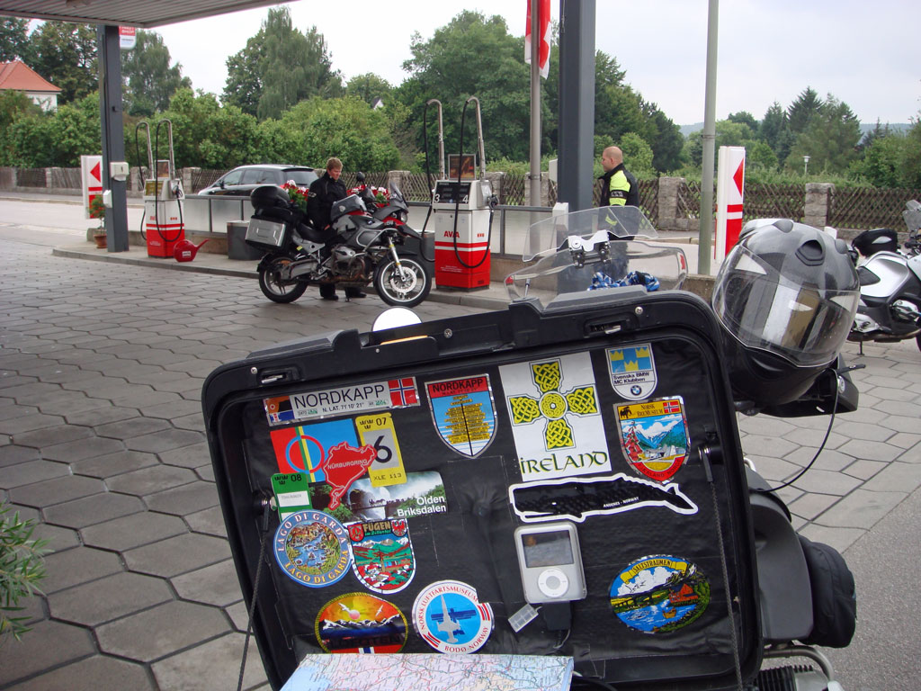 Så det skulle bli bortåt 70 mil på Autobahn innan vi var framme. Sara påpekade i radion att tanklampan börjat lysa men Aste tyckte att "det går ett tag till". Jag som hade torskat kört Bamse några mil tidigare hade aldrig kört mer än ca 32 mil, då gick den på ångorna. Så när vi äntligen hittade en mack så hade vi väl rullat en 36 mil eller något ditåt. Och Sara fick i ca 21 liter i sin tank som bara rymmer 20 liter... Men allt var ok så vi fortsatte norr ut.