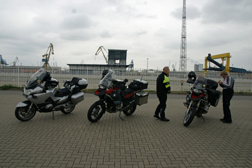 Och väl framme i Rostock så visade det sig att alla biljetter var slut till vår önskade färja. Det enda dom kunde erbjuda var biljetter till Gedser i Danmark. Den överfarten skulle ta ca 2 timmar men innebar också att antingen skulle vi behöva övernatta en natt i Danmark vilket ingen av oss hade lust att göra. Så vi bestämde oss för att dra vidare direkt genom Danmark till Aste o Sara i Åstorp. Det skulle bli ca 30 mil till och GPS'en sa att vi borde vara hemma framåt 23:30 någon gång. Och efter att ha suttit på Wolf en hel dag på Autobahn så var det rätt gôtt att få stretcha benen o stussen lite.