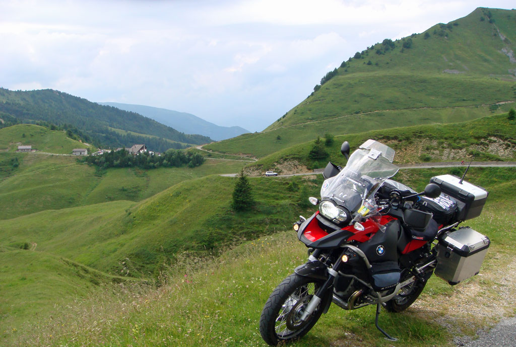 Här har vi kommit över de högsta passen och bergen börjar bli lite mindre spetsiga samtidigt som vägarna börjar kännas lite säkrare igen. Och vi har passerat in i Italien där vi har tagit sikte på Garda sjön för ett par dagars päsande på stranden med bad och solning.