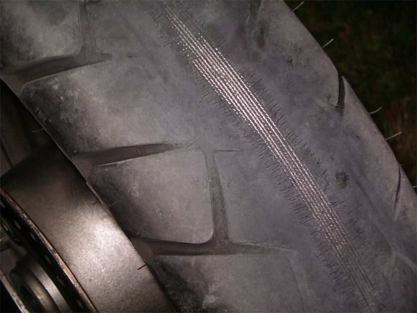 en inspektion av bakdäcket lyste stålkorden igenom gummit. Så istället för