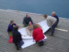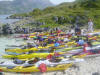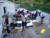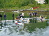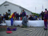 aktiviteter på kvällen. Ett inslag var en tävling i att bygga en paddelbar kajak