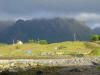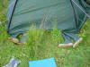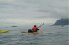 TisdagPå tisdagen gick vi runt på utsidan Tind, och fick den fria horisonten. Det var bra väder, ganska höga dyningar, men ingen obehaglig blåst eller sjö. Lunch intog vi på en otroligt lång sandstrand. Sanden är alldeles vit och består av koraller ?! Efter lunch rundade vi Skogsöya, och fick medvind och chansen att surfa lite. Solen kom fram ordentligt på eftermiddagen och vi hade en riktig go eftermiddag. Lägret blev vid Smines. Några initiativrika barn sålde våfflor och kaffe till hungrande paddlare. Säkert en bra affär. Vi var lite skeptiska till lägerplatsen, för det verkade stört omöjligt att hitta en jämn och slät plätt, men faktum är att jag sov så gott den natten. Träd och buskar omkring oss var belamrade med torkande kläder. |